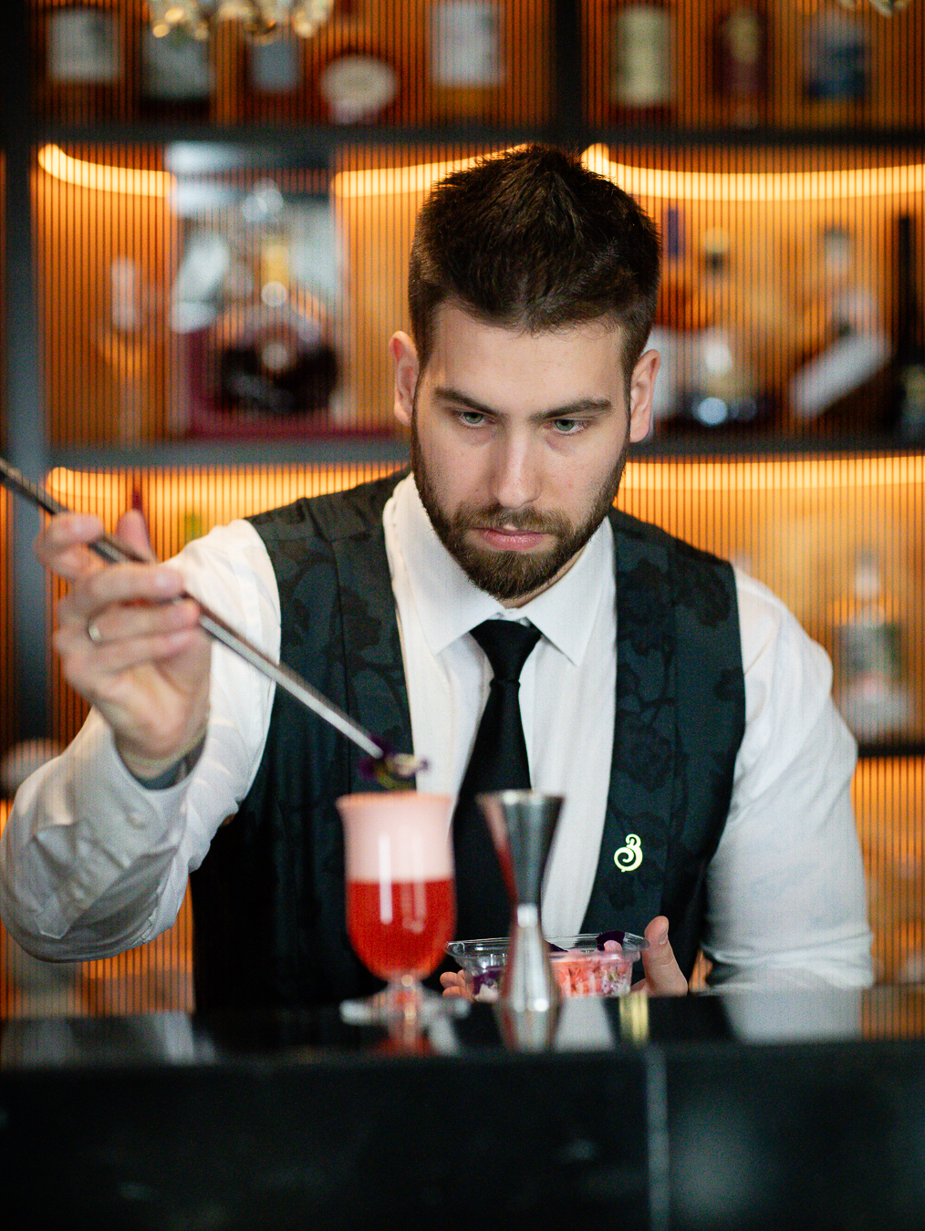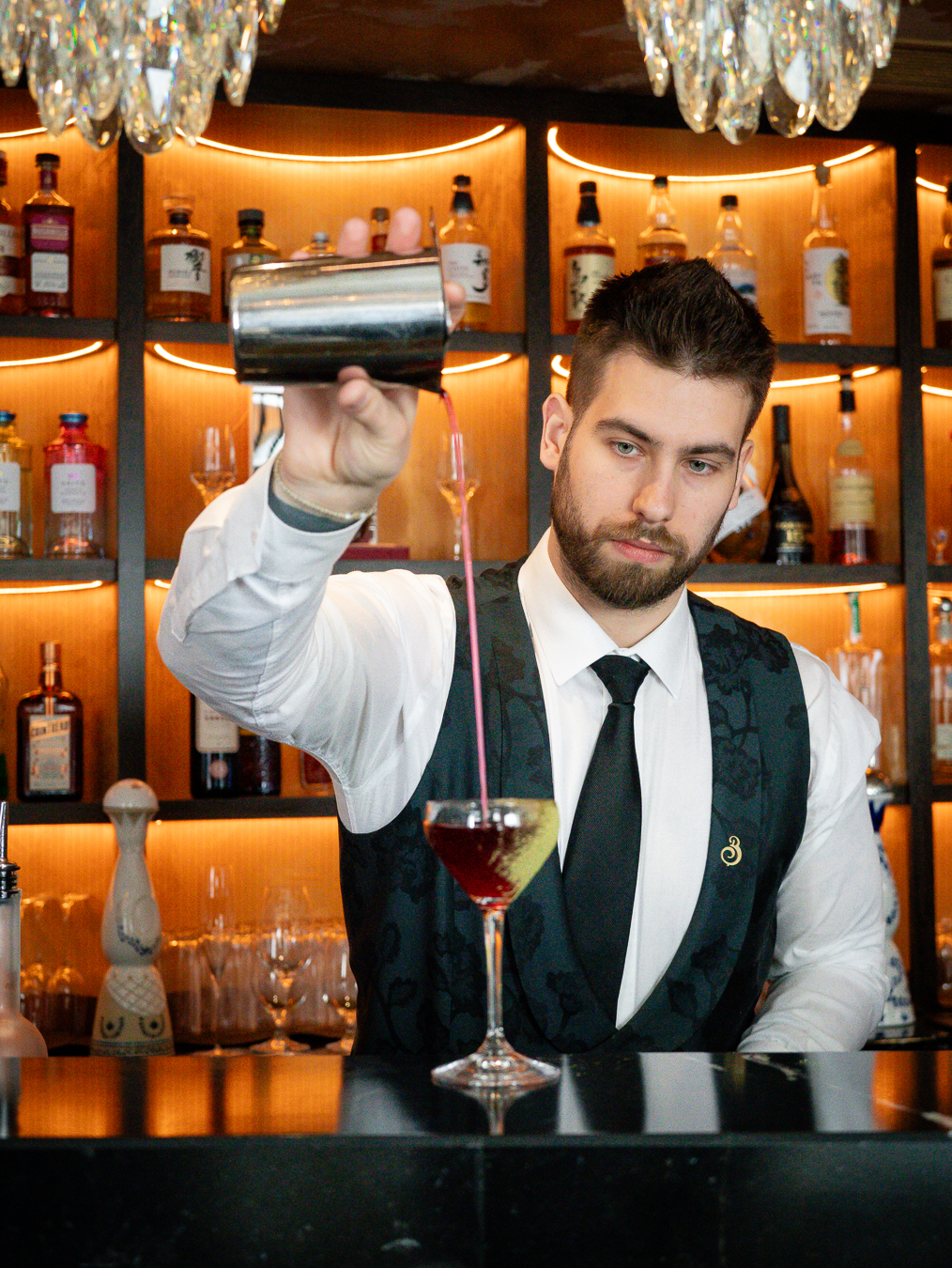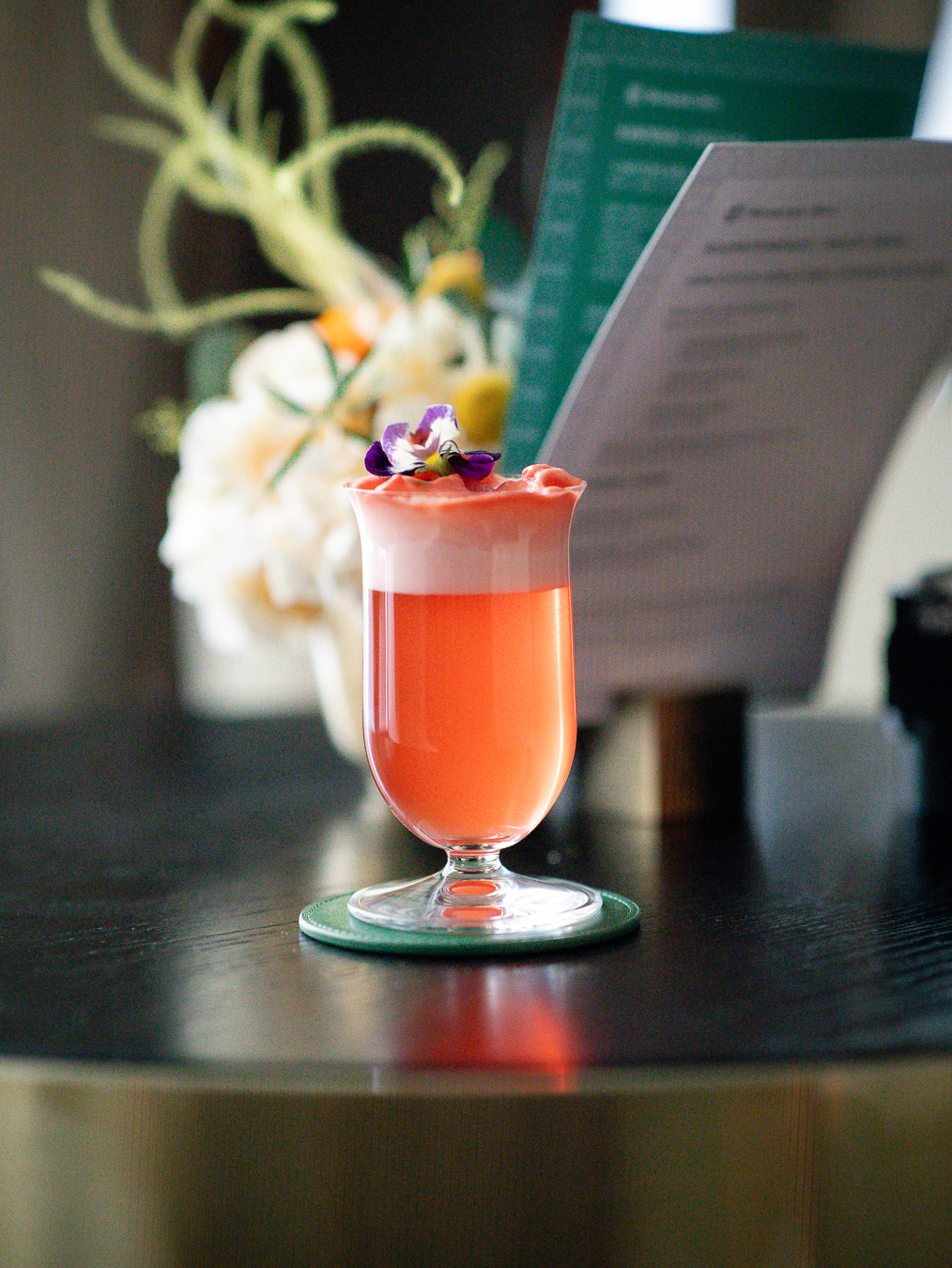 An elegant and minimalistic cocktail with a deep character. Lychee-infused vodka unfolds beautifully in combination with a house-made hibiscus and blackcurrant cordial. The drink features a velvety texture, berry tartness, and a long-lasting floral finish.