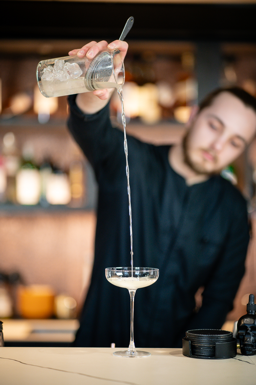 Meie Aasia-Euroopa stiilis restorani ja baari inspiratsiooniks on uute ja põnevate maitsete otsing. Selle kokteili loomiseks valisime ebatavalise, kuid harmoonilise koosluse – sake ja värske wasabi. Tulemuseks on selge, kergelt vürtsikas ja samas pehme jook, mille tekstuuri ja puhtust täiendab jogurti klarifitseerimise meetod.