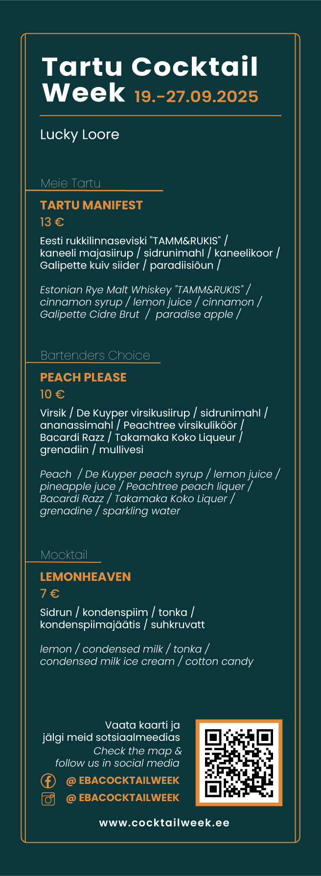 Sind tervitab stiilne miljöö, soe vastuvõtt ning lai kokteilimenüü, kust leiab nii aegumatuid klassikuid kui ka meie enda loomingut.
